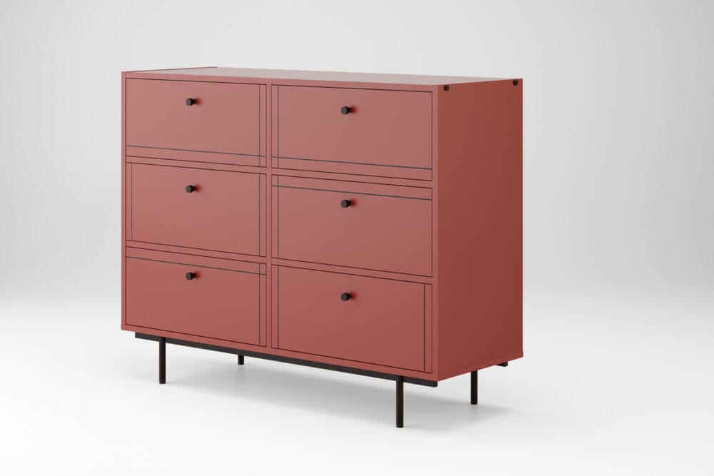 Our furniture is crafted with great attention to every detail. This standing chest of drawers is not only a practical storage solution but also a stylish design piece that brings a modern touch to your home. Its sturdy build is based on high quality materials, ensuring long lasting durability and everyday functionality.