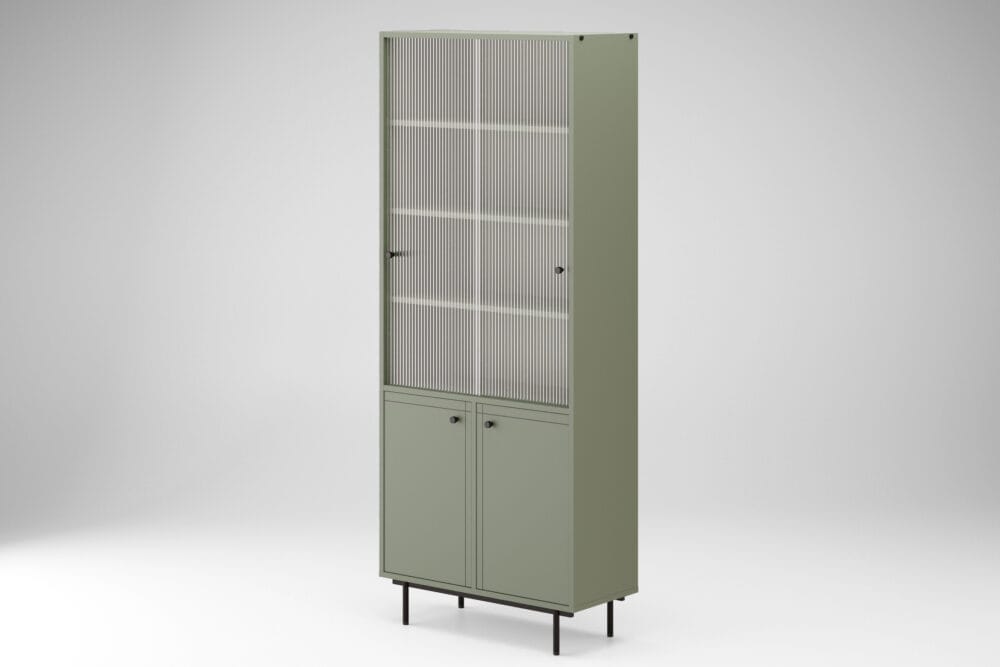 Our furniture is crafted with great attention to detail. The Debiut display cabinet combines functionality, modern design and excellent workmanship. Created for those who value practical storage as well as stylish interiors, it is built from high quality materials that ensure long lasting durability and structural stability. Soft pastel tones match beautifully with many interior styles, bringing a fresh and elegant look. Innovative front details add a modern and distinctive character.